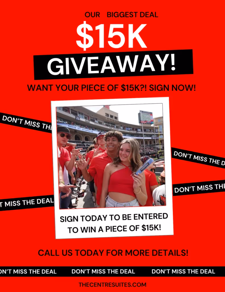 Choosing your new apartment is important. It’s where you’ll host your first game day party (go #redraiders). It’s where you’ll spend time with friends you’ll have for the rest of your life. Your first apartment is responsible for the memories you’ll look back on fondly for years to come. Centre Suites at Overton Park wants to be there for you every step of the way. We provide the best off-campus student housing in Lubbock, right across the street from Texas Tech University. We have a friendly on-site staff and amazing amenities that’ll have you excited to spend the weekend at home!